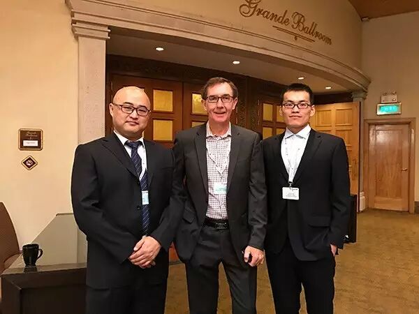 卓创资讯分析师毛原飞、国际事业部客户经理曹冰寒(左)与主办方Informa负责人Michael Grech(中)合影留念