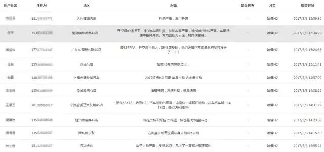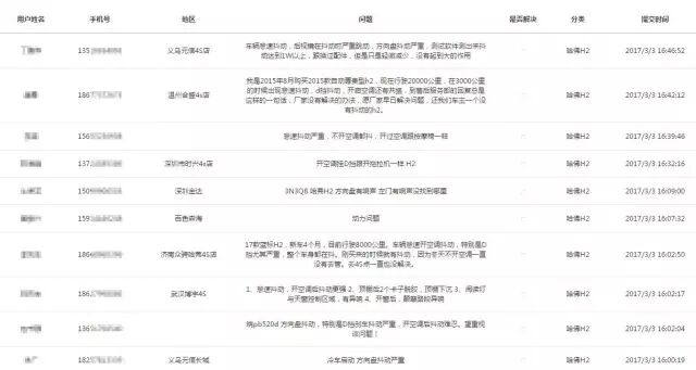 (图为部分车主反馈情况)