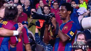 论足球场上的摄影大师,非埃托奥莫属,早在2008年,为巴萨上演帽子戏法的猎豹就用场边记者的相机为跑来庆祝的队友博扬和普约尔拍下了一张有点模糊的照片。转会国际米兰后,当又一次完成帽子戏法后埃托奥重操旧业,他还是向场边的摄影师借了相机,为刚刚给自己送上助攻的队友斯内德拍下了这张清晰度很高的“一笑倾天下”的照片,与几年前相比,猎豹的摄影技术显然进步不少。